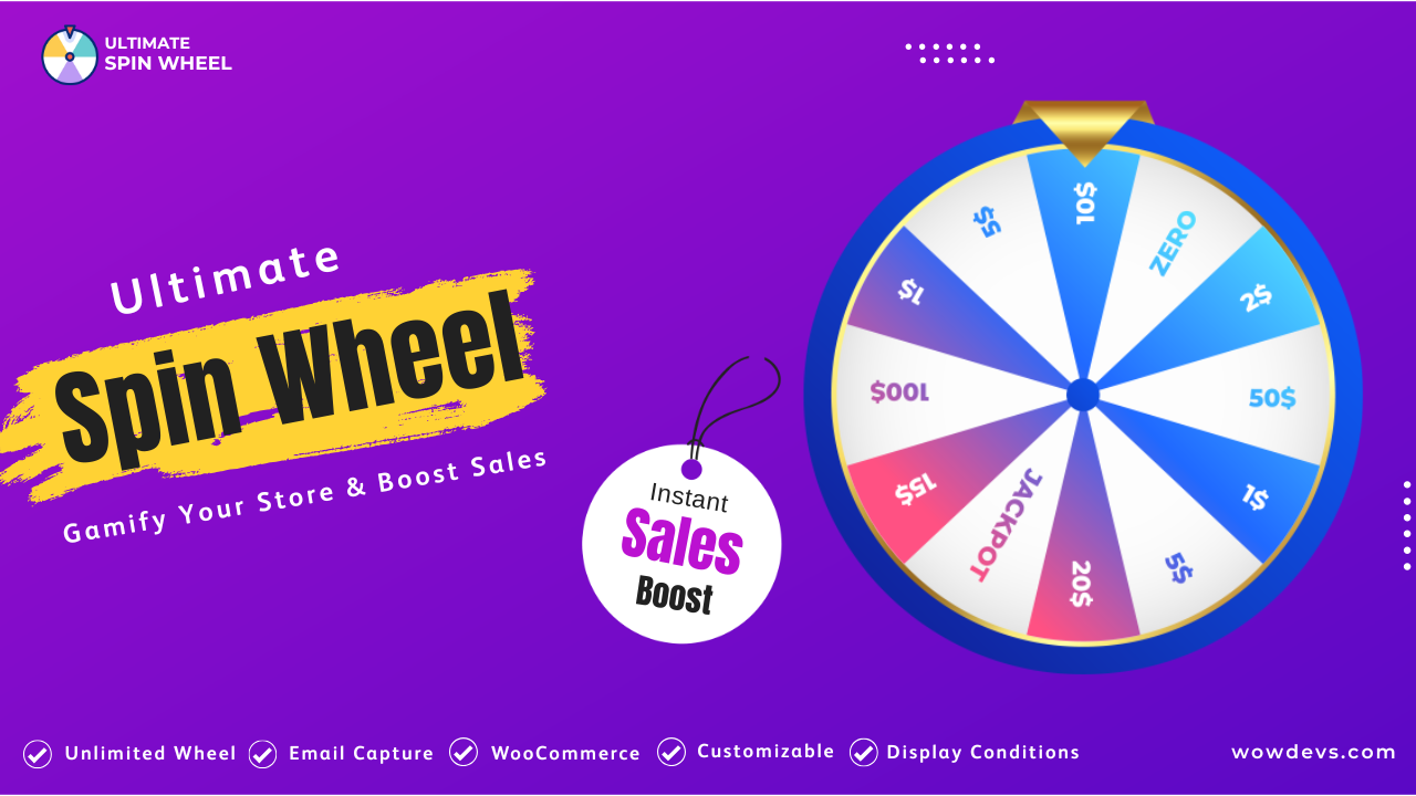 A dynamic spin wheel for WordPress that boosts engagement. Capture leads, delight visitors, and turn every visit into a fun experience with Ultimate Spin Wheel.